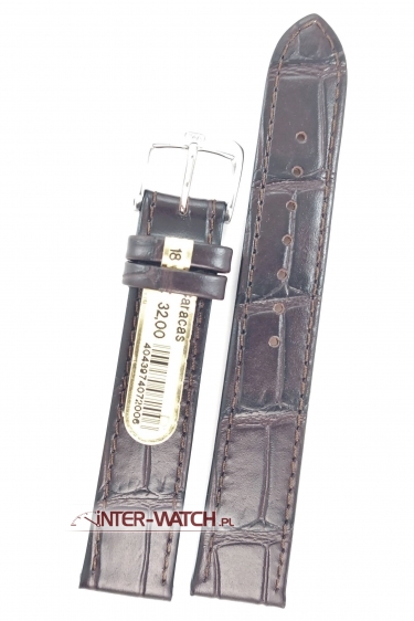 Pasek Di-Modell Caracas 1695.2818 szerokości 18 mm przy kopercie, kolor No.28 - brązowy pasek do zegarka 18 mm szeroki. Markowy pasek Di-Modell do zegarka 18 mm. Pasek do zegarka Di-Modell Caracas z kolekcji Noble House to pasek do zegarka wykonany ręcznie z naturalnej skóry cielęcej z trwale tłoczoną fakturą skóry Aligatora. Zastosowany patentowy system Areo-Futter który zapobiega akumulowaniu się wilgoci wewnątrz paska co przedłuża jego żywotność oraz poprawia komfort użytkowania. Dodatkowo zastosowano patentowe zabezpieczenie przed przesuwanien sie szluflki. Pasek do zegarka Di-Modell Caracas jest estetyczny, mocny a jednocześnie miękki i bardzo wygodny w użytkowaniu. pasek do zegarka przeszywany na całej długości, bez wypełnień. Szerokość paska nieznacznie zwężana na długości przy klamerce do 16 mm. Klamerka stalowa - sygnowana, stalowa lub złocona do wyboru. Pasek do zegarka Di-Modell Caracas to elegancki i cieńki pasek do zegarka, dedykowany do cieńkich markowych i złotych zegarków. Dostępny w długościach S oraz L. Prosimy o dokładne sprawdzenie szerokości mocowania paska przy kopercie zegarka oraz długości całkowitej paska. Oferujemy najlepsze paski Di-Modell rozmiar 18 do zegarków różnych marek.