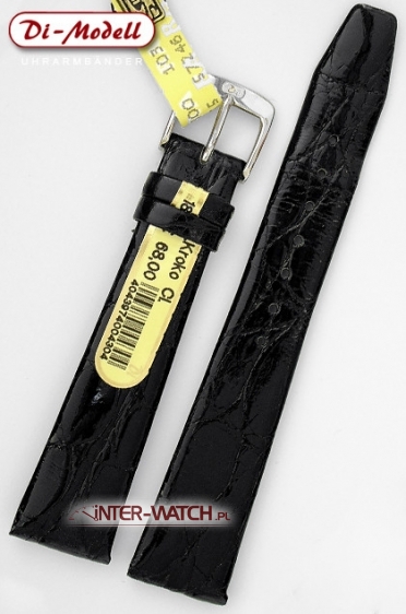 Pasek do zegarka 18 mm Di-Modell Krokodil Clip 1085.1018 szerokości 18 mm przy kopercie, kolor No.10- czarny pasek do zegarka z krokodylej skóry. Luksusowy pasek do złotego zegarka z zaczepem Clip 18 mm na stałą poprzeczkę. Antyalergiczny pasek do zegarka wykonany ręcznie z prawdziwej skóry Krokodyla specjalnie selekcjonowanej. Pasek z Krokodyla do zegarka wykonany w technologii bezszwowej, naturalna faktura skóry Krokodyla wykończona na wysoki połysk. Zastosowano patentowe zabezpieczenie przed przesuwaniem się szlufki. Pasek do zegarka Di-Modell Krokodyl Clip jest estetyczny, trwały a jednocześnie miękki i bardzo wygodny w użytkowaniu. Szerokość paska nieznacznie zwężana na długości przy klamerce do 14 mm. Klamerka stalowa - sygnowana, stalowa lub złocona do wyboru. Pasek Di-Modell Krokodyl Clip to ekskluzywny i elegancki pasek do zegarka dostępny w długościach standardowych S i L. Prosimy o dokładne sprawdzenie szerokości mocowania paska przy kopercie zegarka oraz długości całkowitej paska. Polecamy najlepsze paski Di-Modell do zegarków.