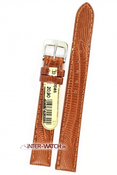 Pasek Di-Modell do zegarka 13 mm, pasek Di-Modell Topas 2160.1113 szerokości 13 mm przy kopercie, kolor No.11 - złoty brąz, pasek 13 mm do zegarka damskiego. Pasek Di-Modell Topas to pasek do zegarka wykonany ręcznie z naturalnej skóry cielęcej najwyższej jakości, na pasku jest trwale tłoczona faktura skóry Jaszczurki Teju. Pasek Di-Modell Topas jest estetyczny, mocny a jednocześnie miękki i bardzo wygodny w użytkowaniu. pasek do zegarka przeszywany na całej długości, szerokość paska nieznacznie zwężana na długości przy klamerce do 12 mm. Klamerka stalowa - sygnowana, stalowa lub złocona do wyboru. Pasek Di-Modell Topas to klasyczny i elegancki pasek do zegarka o bardzo wysokich walorach użytkowych, dostępny w długościach standardowych S oraz SXL. Prosimy o dokładne sprawdzenie szerokości mocowania paska przy kopercie zegarka oraz długości całkowitej paska. Polecamy czarny pasek Di-modell do zegarka 13 mm dobrze wykonany.
