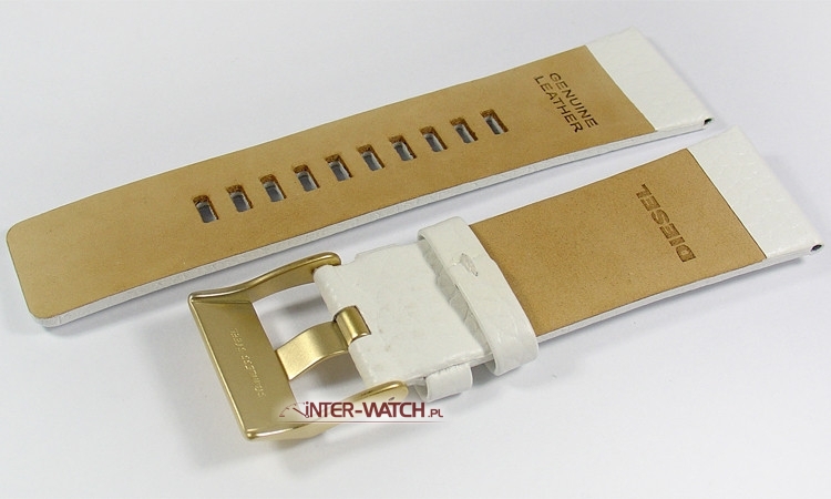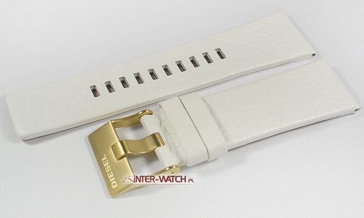 Oryginalny pasek Diesel DZ1476, biały skórzany pasek do zegarka Diesel DZ1476 szerokości 27 mm przy kopercie, klamerka stalowa sygnowana napisem Diesel. Oryginalny pasek do zegarka Diesel DZ-1476 z mocowaniem dedykowanym do zegarków Diesel :