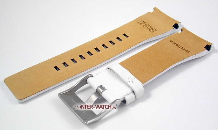 Pasek do zegarka Diesel DZ1630 biały, skórzany pasek do zegarka Diesel DZ-1630 szerokości 26 mm przy kopercie spacjalnie wycinany, klamerka stalowa sygnowana logo Diesel. Skórzany pasek Diesel dedykowany do zegarka Diesel :