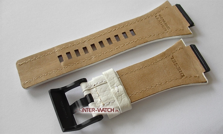 Oryginalny pasek Diesel DZ4173, biały skórzany pasek do zegarka Diesel DZ4173 szerokości 22 mm przy kopercie, klamerka stalowa sygnowana napisem Diesel. Oryginalny pasek do zegarka Diesel DZ-4173 z mocowaniem dedykowanym do zegarków Diesel :