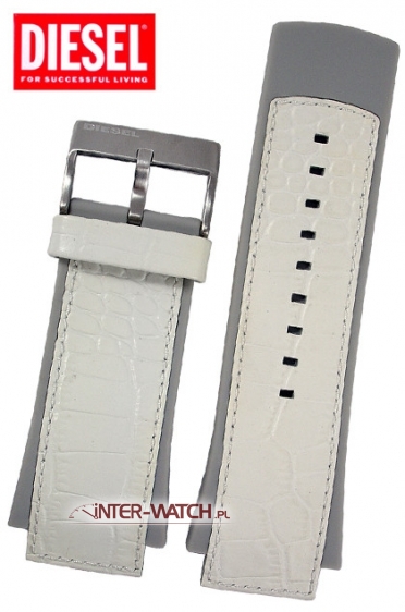 Oryginalny pasek Diesel DZ7043, biały skórzany pasek do zegarka Diesel DZ7043 szerokości mm przy kopercie, mocowany za pomocą wkrętów, klamerka stalowa sygnowana logo Diesel. Pasek dedykowany do modeli zegarków Diesel :