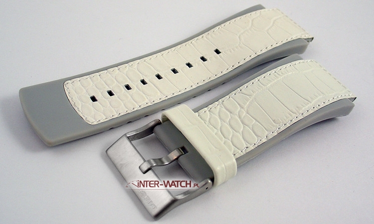 Oryginalny pasek Diesel DZ7043, biały skórzany pasek do zegarka Diesel DZ7043 szerokości mm przy kopercie, mocowany za pomocą wkrętów, klamerka stalowa sygnowana logo Diesel. Pasek dedykowany do modeli zegarków Diesel :