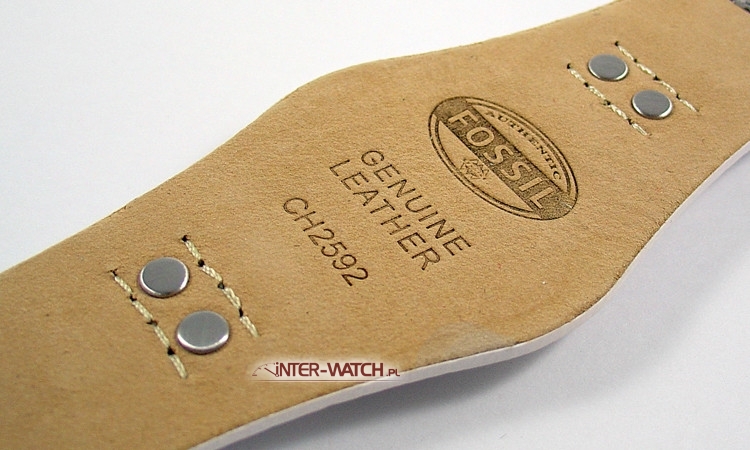Biały pasek Fossil CH-2592, oryginalny pasek do zegarka Fossil CH2592 nitowany do skórzanej podkładki. Polecamy biały pasek do zegarka Fossil z podkładką przeszywany na całej długosci. Fasonowy pasek do zegarka Fossil CH 2592 z mocowaniem 22 mm.
