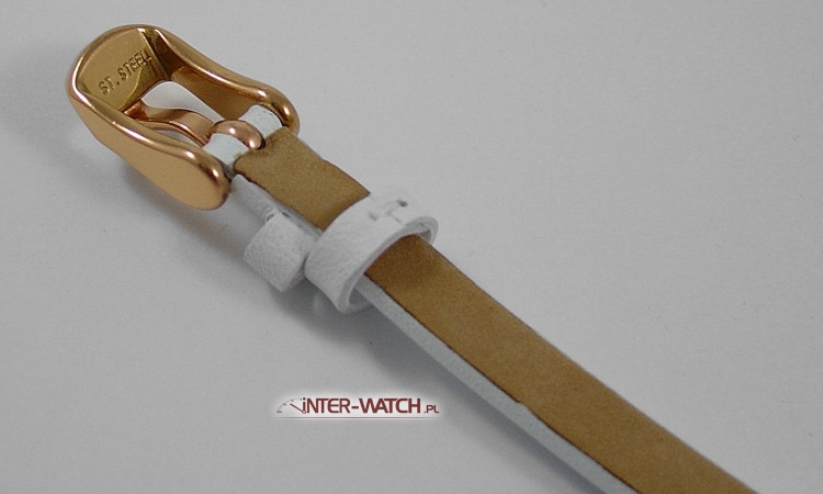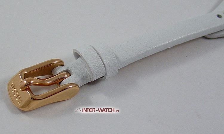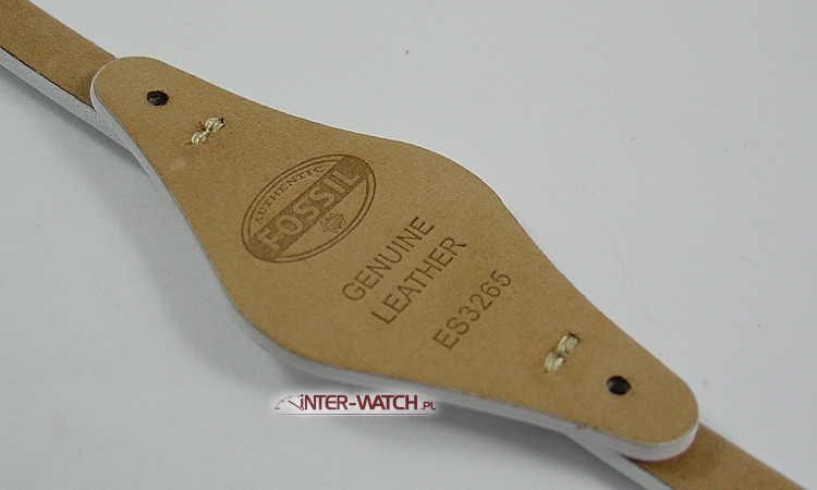 Pasek do zegarka Fossil ES 3265, biały pasek Fossil ES3265, polecamy skórzany pasek do zegarka Fossil ES-3265. Fasonowy pasek Fossil z mocowaniem 7 mm, przeszywany z podkładką, zegarek mocowany do paska za pomocą wkrętów, klamerka złocona. Pasek do damskiego zegarka Fossil dedykowany do modeli :