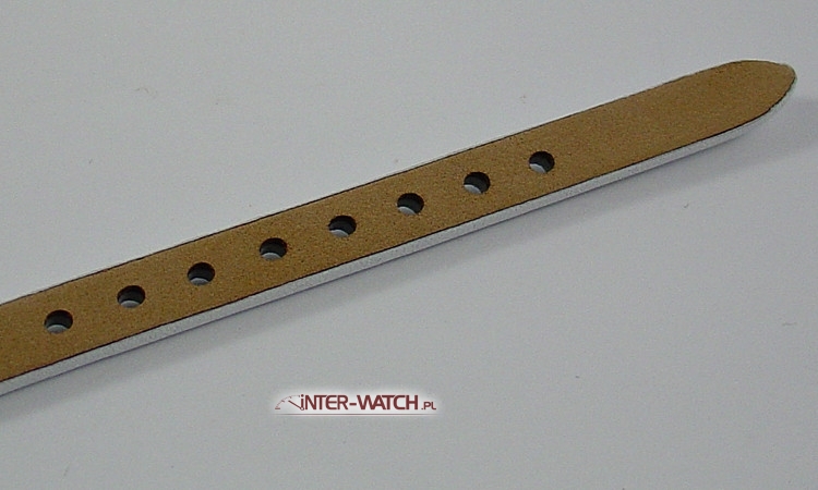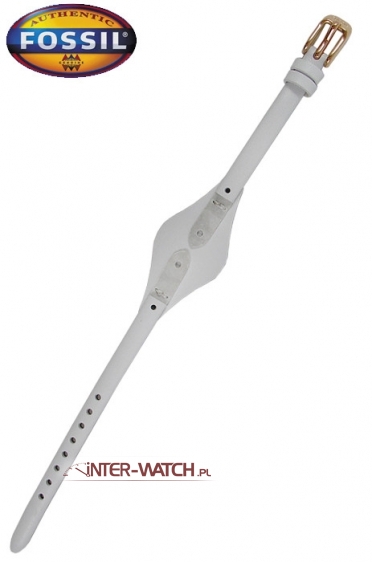 Pasek do zegarka Fossil ES 3265, biały pasek Fossil ES3265, polecamy skórzany pasek do zegarka Fossil ES-3265. Fasonowy pasek Fossil z mocowaniem 7 mm, przeszywany z podkładką, zegarek mocowany do paska za pomocą wkrętów, klamerka złocona. Pasek do damskiego zegarka Fossil dedykowany do modeli :