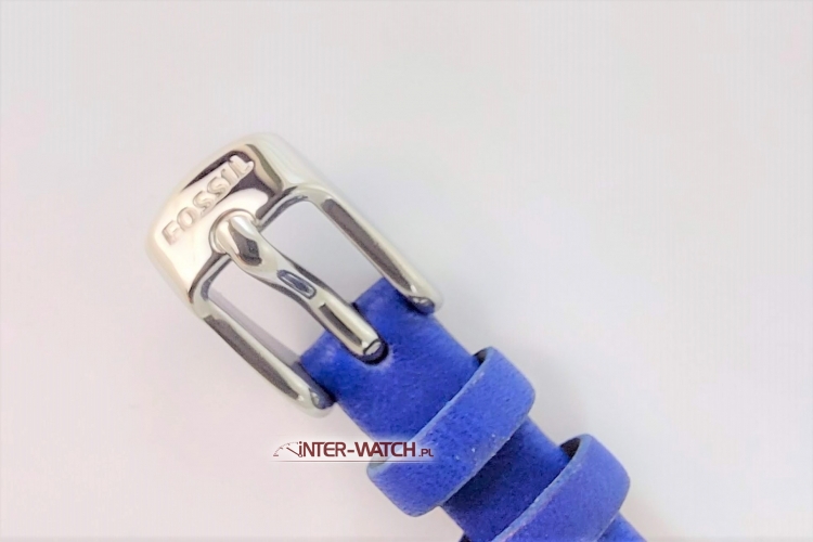 Pasek do zegarka Fossil ES3318, pasek Fossil ES3318 z podkładką, oryginalny skórzany pasek do zegarka Fossil ES3318. Niebieski pasek do zegarka Fossil z mocowaniem 8 mm, przeszywany z podkładką, klamerka stalowa z logo Fossil, zegarek mocowany do paska za pomocą wkrętów. Oryginalny pasek do zegarka Fossil dedykowany do modeli :