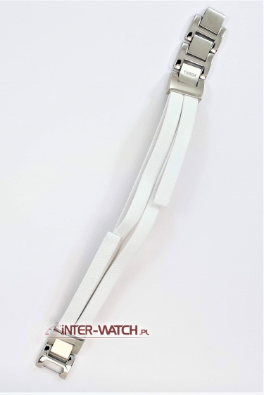 Pasek do zegarka Fossil JR1442, biały pasek Fossil JR1442 z elementami stalowej bransolety, polecamy skórzany pasek do zegarka Fossil JR1442, zamek bransoletkowy sygnowany logo Fossil, zegarek mocowany do paska za pomocą teleskopów, Pasek do damskiego zegarka Fossil dedykowany do modeli :