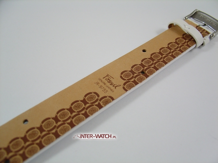 Pasek do zegarka Fossil JR-9755, oryginalny pasek Fossil JR9755, polecamy BIAŁY skórzany pasek do zegarka Fossil JR9755. Fasonowy pasek Fossil z mocowaniem 7 mm, przeszywany i nitowany stalowymi oczkami i nitami. Pasek do damskich zegarków Fossil dedykowany do modeli :