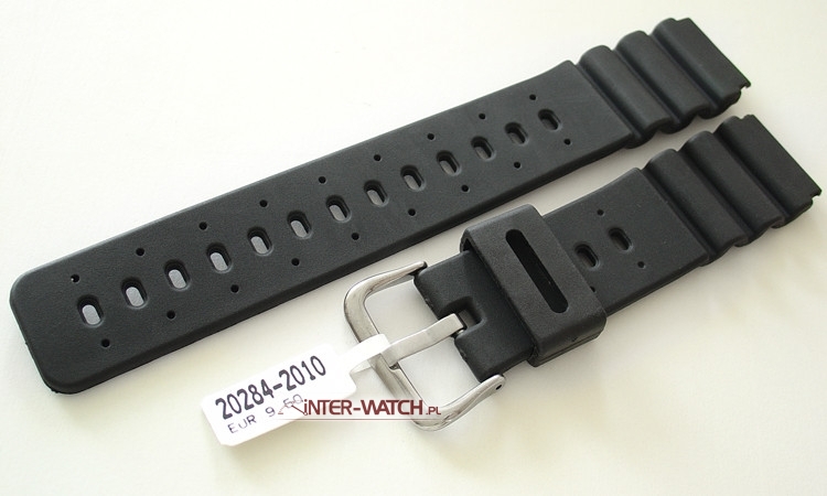 Kauczukowy pasek do zegarka 20 mm, trwały i wodoodporny pasek do zegarka wykonany z czarnego kauczuku. Oferujemy wysokiej jakości pasek do zegarka z klasycznym mocowaniem przy kopercie 20 mm. Czarny pasek do zegarka dedykowany do modeli Diver zegarków Citizen, Seiko, Orient, Casio i innych marek przeznaczonych do sportowego nurkowania jako pasek podstawowy lub zamiennik oryginalnego paska, może być stosowany również do innych typów zegarków. Pasek do zegarka nie uczulający i wygodny w użytkowaniu. Możliwe zastosowanie tego paska w innych markach zegarków pod warunkiem dopasowania szerokości mocowania przy kopercie