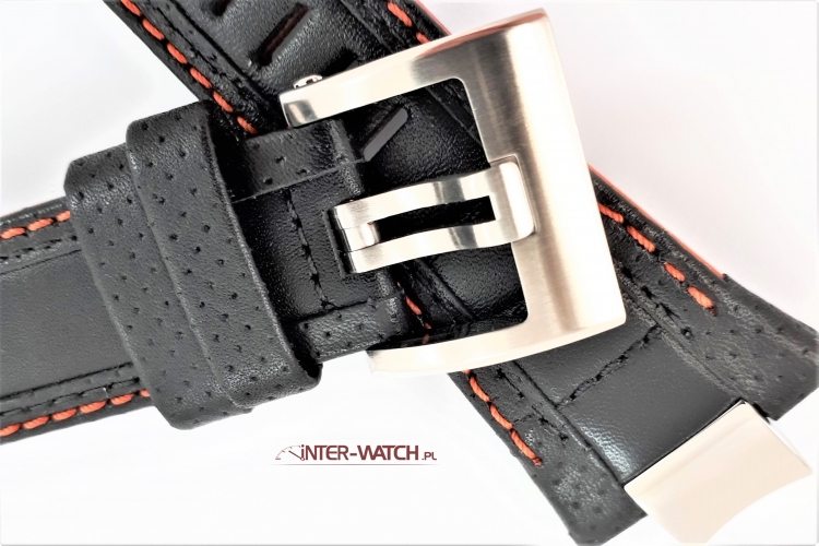 Pasek do zegarka Seiko SNAD23P2 czarny przeszywany czerwoną nitką oryginalny pasek do Seiko Sportura. Oferujemy skórzany pasek do zegarka Seiko zakończony stalowymi adapterami do mocowania przy kopercie, klamerka  stalowa. Pasek do zegarka Seiko dedykowany do modelu SNAD23P2 z referencją na dekielku koperty7T62-0JV0,7T86-0AB0,6G28-00N0,5D22-0AC0,