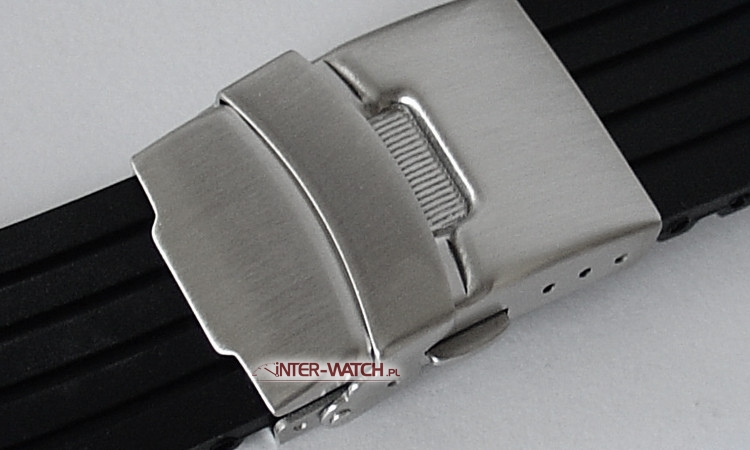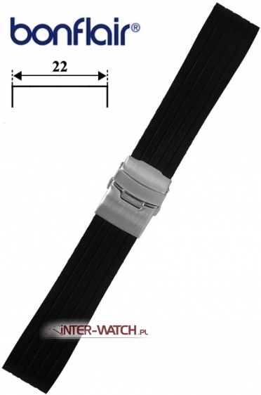 Silikonowy pasek do zegarka 22 mm marki Bonflair, trwały i wodoodporny pasek do sportowego zegarka. Wysokiej jakości CZARNY pasek do zegarka szerokości 22 mm przy kopercie, zamek skrzydełkowy jak w bransolecie z dodatkowym zabezpieczeniem. Skracanie paska poprzez odcinanie elementów paska oraz regulację na zamku. Miękki i antyalergiczny pasek do zegarka wykonany z silikonu.