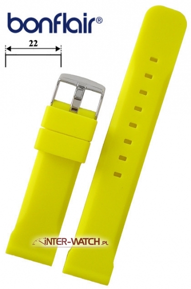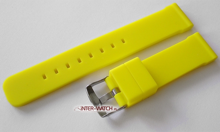 Silikonowy pasek do zegarka 22 mm, estetyczny żółty pasek do zegarka wykonany z silikonu. Oferujemy wysokiej jakości pasek do zegarka z klasycznym mocowaniem przy kopercie 22 mm, zwężany do 20 mm przy klamerce, klamerka stalowa. Pasek z wierzchu gładki - nie „przykleja się” do nadgarstka, co podnosi komfort użytkowania tego paska. Pasek dedykowany do nowoczesnych modeli zegarków różnych marek jako pasek podstawowy lub zamiennik oryginalnego paska. Pasek nie powoduje reakcji alergologicznych – nie uczula i jest wygodny w użytkowaniu. Pasek odporny na działanie potu. Możliwe zastosowanie tego paska w prawie w każdym zegarku pod warunkiem dopasowania szerokości mocowania przy kopercie