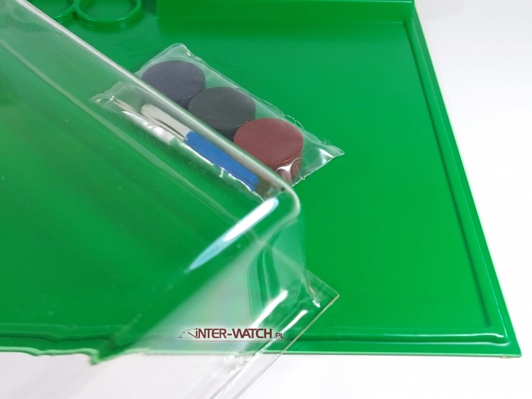 Twarda podkładka robocza Boley z przykrywką ochronną to niezastąpione narzędzie w warsztacie zegarmistrza. Sztywna powierzchnia zapewnia maksymalną stabilność podczas montażu, demontażu i kontroli mechanizmów, a antypoślizgowy spód utrzymuje podkładkę pewnie na blacie. Przykrywka ochronna chroni elementy przed kurzem i przypadkowymi uszkodzeniami w czasie pracy lub przerw. Dzięki wymiarom ok. 350 × 250 mm podkładka oferuje komfortową przestrzeń roboczą, umożliwiając bezpieczne i precyzyjne wykonywanie czynności zegarmistrzowskich.