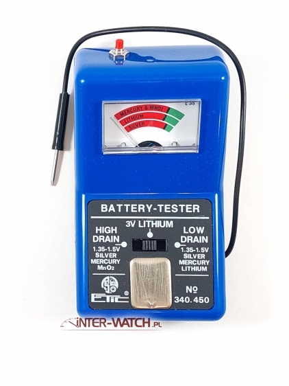 Etic 340.450 to praktyczny tester baterii zegarkowych i guzikowych, który umożliwia szybkie sprawdzenie napięcia i realnej wydajności ogniw dzięki funkcji „under load”. Obsługuje popularne baterie 1,35–1,5 V oraz litowe 3 V. Solidny, kompaktowy i łatwy w obsłudze – niezastąpiony w pracy zegarmistrza i dla każdego, kto chce mieć pewność co do sprawności baterii.